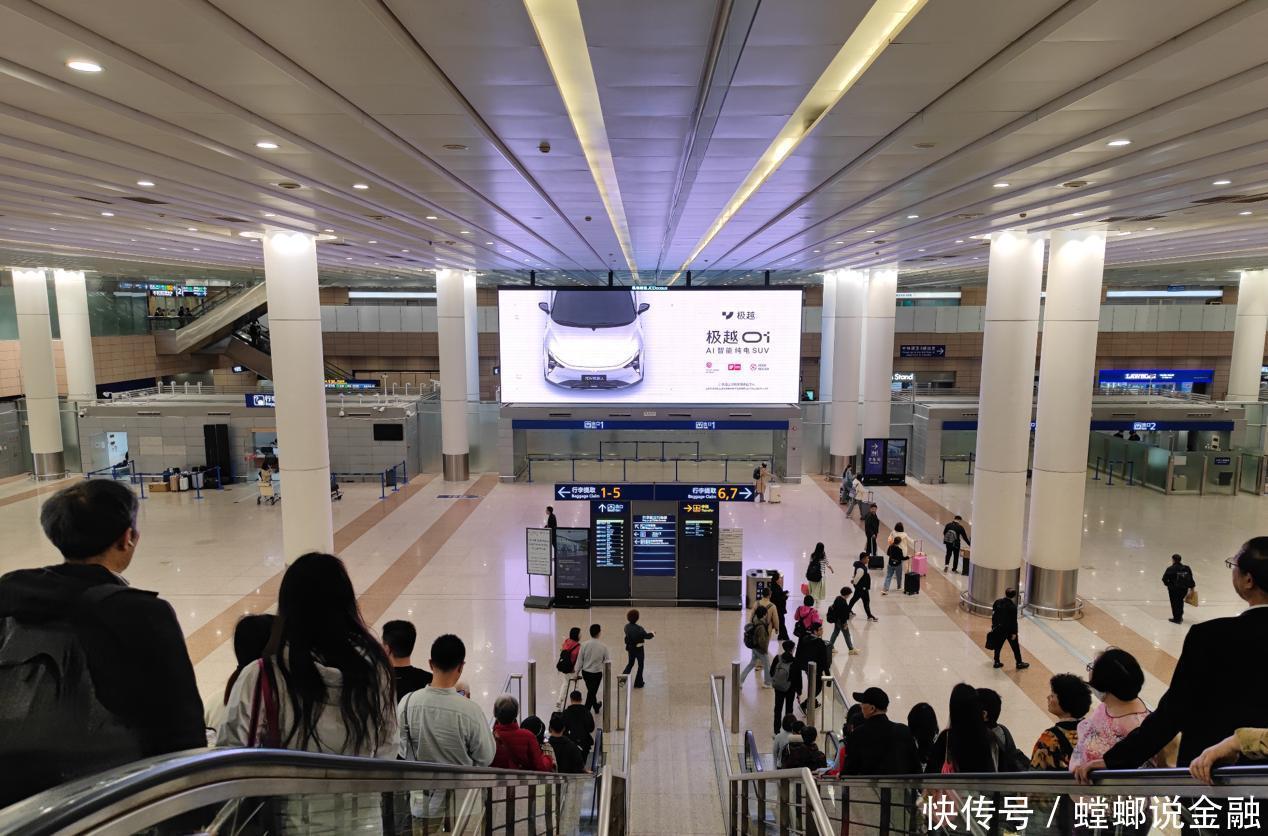 除了此前提到的极越展台热闹非凡,极越也已经一反其“不打广告”的常态,开启了广告宣传。在车展前,极越已经开启了其机场的宣传,在上海虹桥、浦东国际机场,以及北京首都机场,都能见到醒目的“为自动驾驶而生”极越01广告牌。