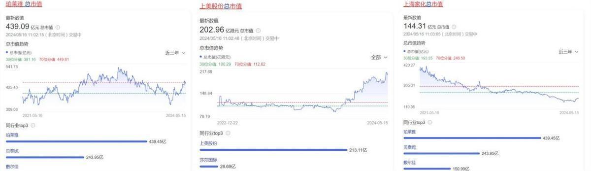 截至目前,除了珀莱雅在业绩与市值上皆超过了上海家化外,包括上美股份和贝泰妮等在内的国货美妆品牌,皆实现了对上海家化的市值反超,这多少让昔日的江湖大哥,颜面扫地。