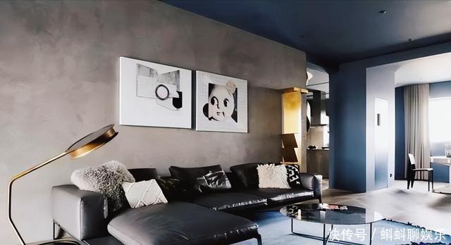 井柏然的豪宅位于北京,是一套时尚的复式公寓,踏入公寓,就可以看到这一面面灰蓝色的墙壁,给人一种沉闷、呆板的感觉,仿佛置身于冷峻的水泥墙面之间;
