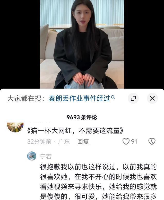 就在“秦朗丢失寒假作业”这条视频爆火之后,面对网友对其摆拍的质疑,“猫一杯”粉丝们经常使用这个观点进行反驳,有一位“猫一杯”的粉丝就在评论区承认:很抱歉我以前也这样说过。