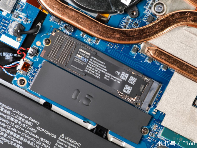 目前,笔记本电脑已经开始支持PCIe 5.0接口的固态硬盘,并且笔记本电脑由于内部空间有限,所以大部分都需要选择单面颗粒的固态硬盘进行安装,三星990 EVO为了更好的兼容这类笔记本电脑,同样使用了单面颗粒的设计,让主控芯片和NAND颗粒安排上正面,底部则做到纯平的设计,配合上2280 M.2的标准身材这样用户完全不需要担心安装时兼容的问题,并且三星作为原厂,在前期的设备兼容性测试方面也是做足了测试,能够满足市面上几乎所有的主板、笔记本电脑的升级,可以做到即插即用,轻松升级。